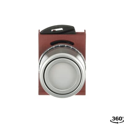 The P9MPLBGV Pushbutton is: Modular metal - Pushbutton with holder - Momentary - Flush - White - Illuminated - Satin Chrome Metal