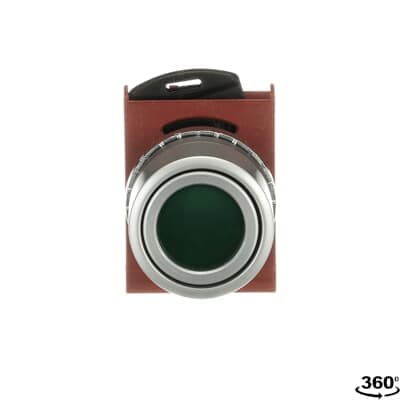 The P9MPLVGV Pushbutton is: Modular metal - Pushbutton with holder - Momentary - Flush - Green - Illuminated - Satin Chrome Metal