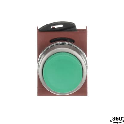 The P9MPNVS Pushbutton is: Modular metal - Pushbutton with holder - Momentary - Extended - Green - Non-illuminated - Satin Chrome Metal